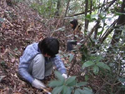 ![]() 森の斜面 日当たり悪いので 間伐 |