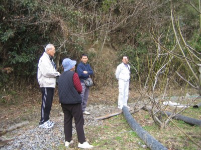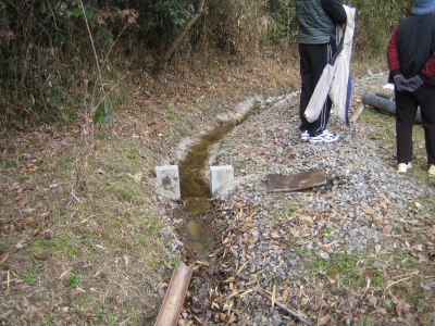 幼虫育成用の川 休耕田に小西さんが一人で工事 |
