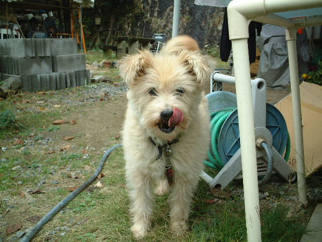 やさしい感じの犬でした。おうちのおかあさんは 「まあかわいい」と抱き上げて